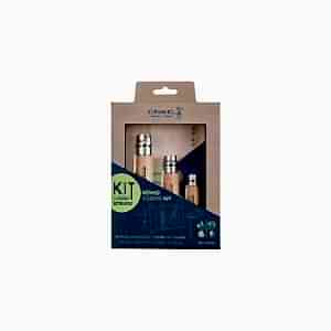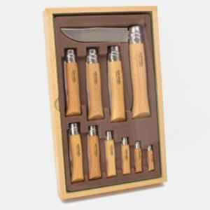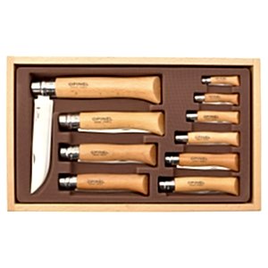 Opinel No. Cam kapaklı ahşap vitrinde 2'den 12'ye kadar